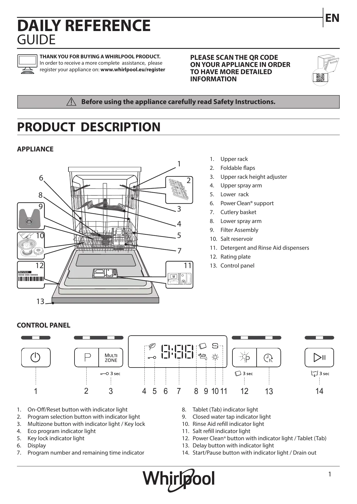 W3F D634 X - Lave vaisselle WHIRLPOOL - Notice d'utilisation et mode d'emploi gratuit