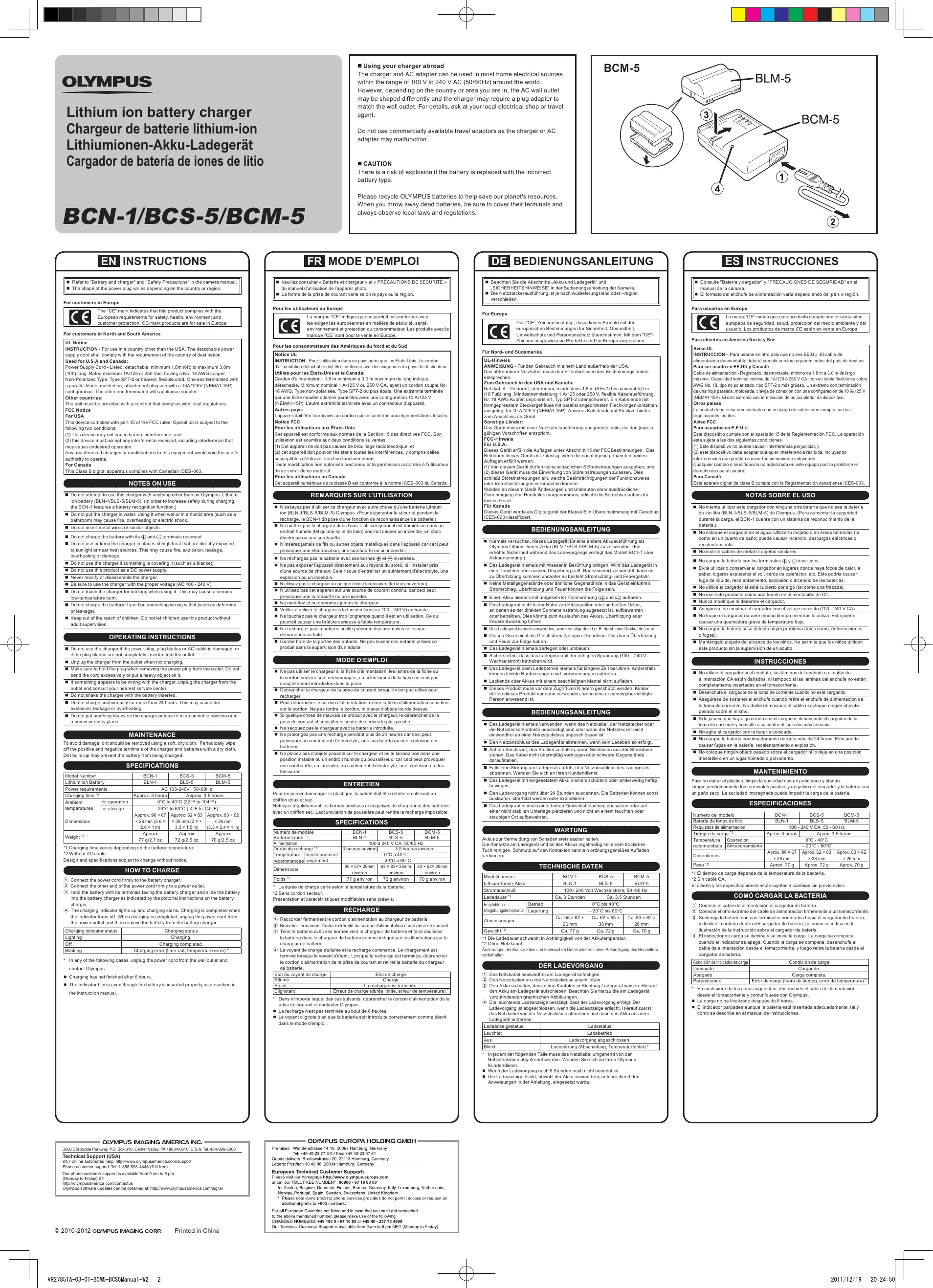 BCS5 - Chargeur de batterie OLYMPUS - Notice d'utilisation et mode d'emploi gratuit