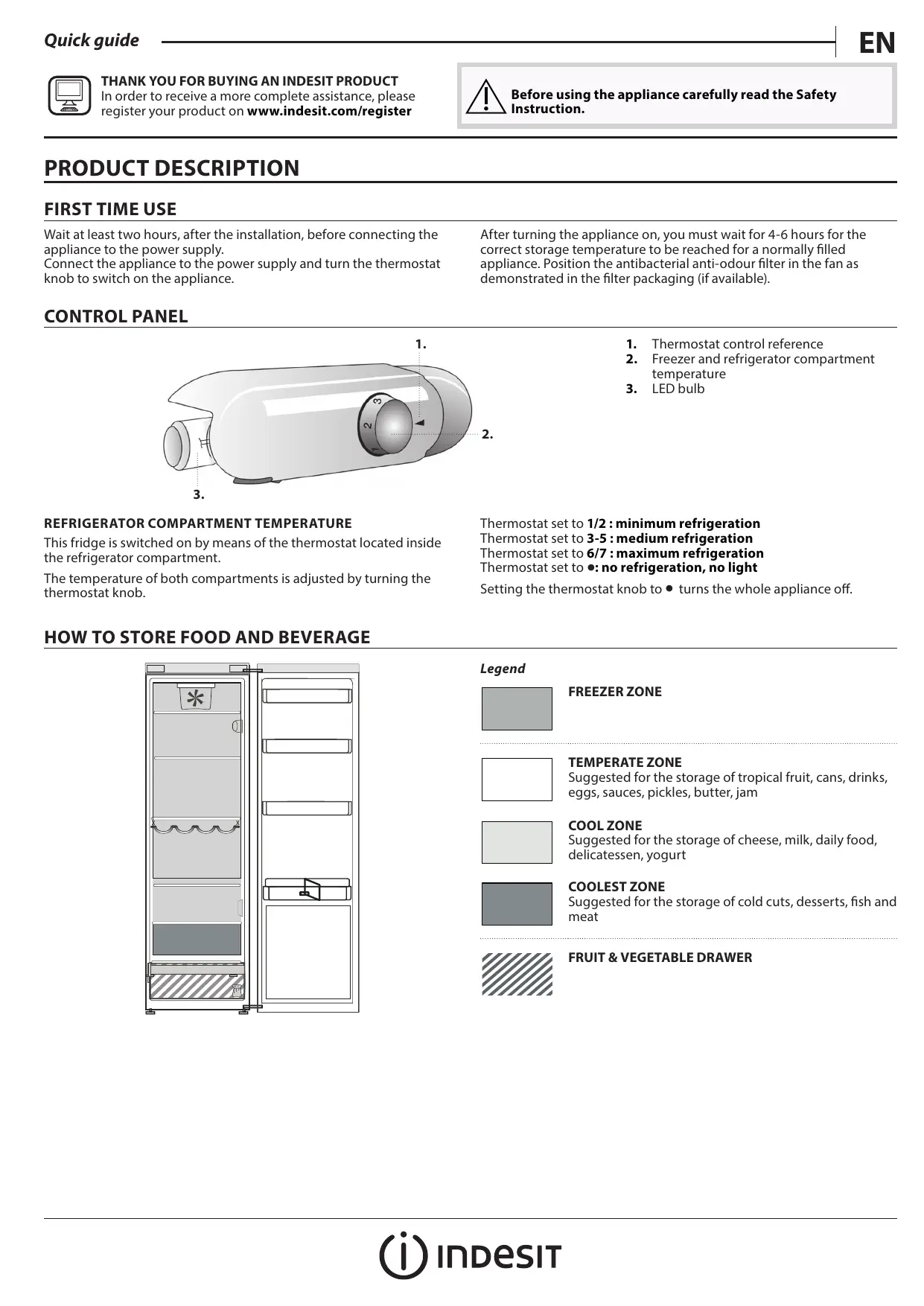 Le mode d'emploi est généralement fourni avec le réfrigérateur. Vous pouvez également le télécharger depuis le site web d'INDESIT en entrant le modèle de votre appareil.