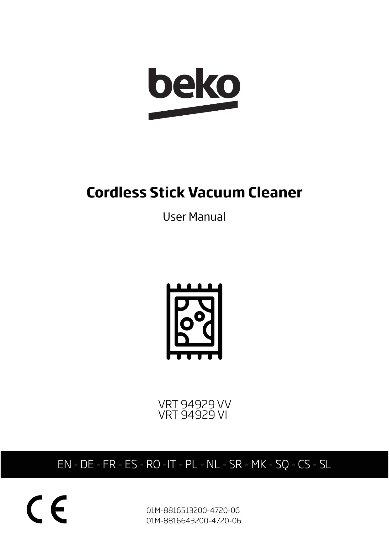 VRT94929VV - Aspirateur balai BEKO - Notice d'utilisation et mode d'emploi gratuit