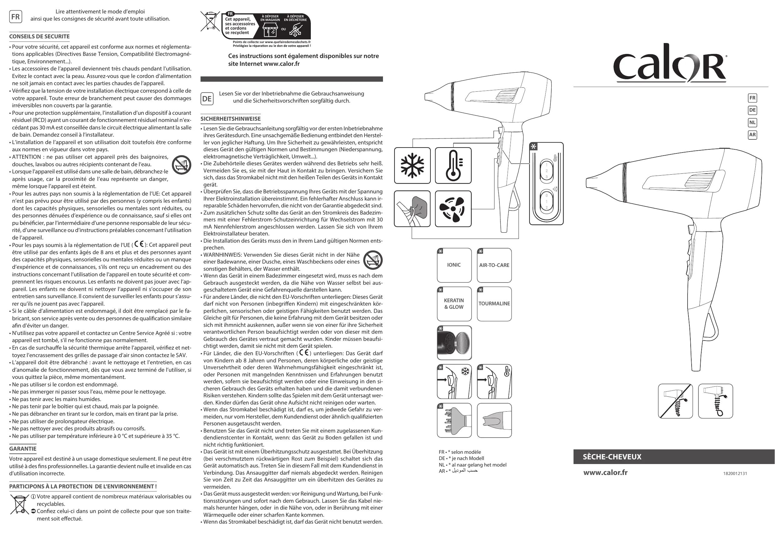 CV888LC0 - Sèche cheveux CALOR - Notice d'utilisation et mode d'emploi gratuit
