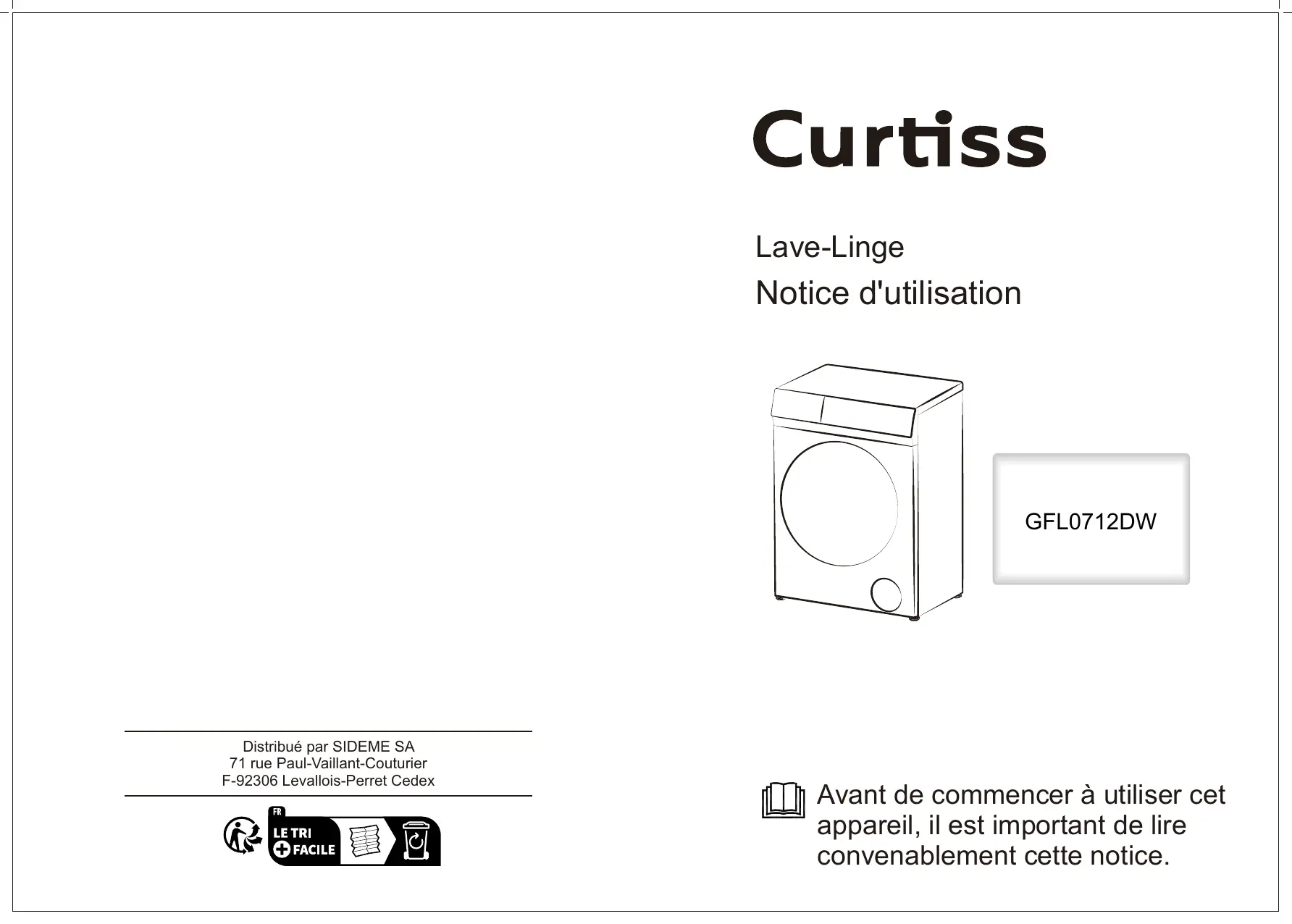 GFL0712DW - Lave-linge CURTISS - Notice d'utilisation et mode d'emploi gratuit