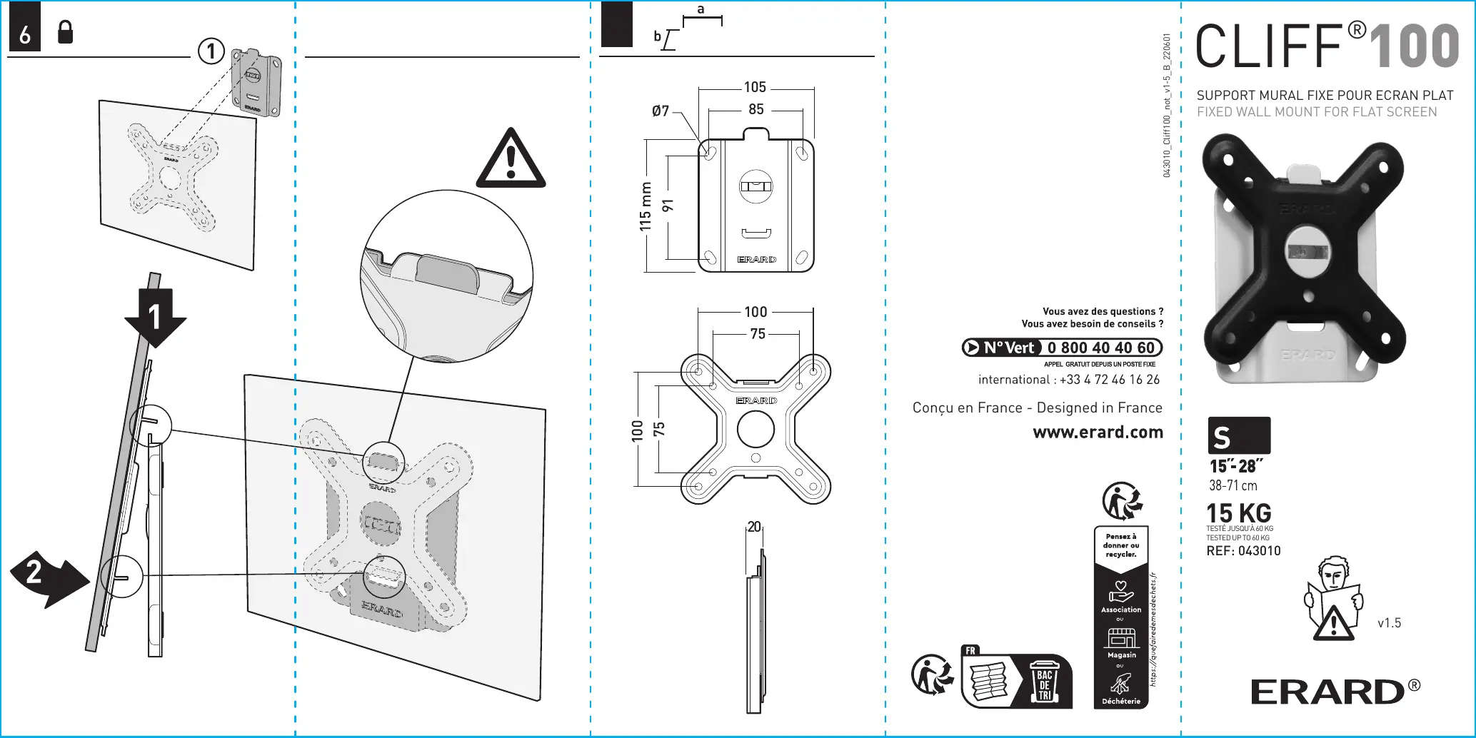 Téléchargez la notice de votre Support mural au format PDF gratuitement ! Retrouvez votre notice CLIFF100043010 - ERARD et reprennez votre appareil électronique en main. Sur cette page sont publiés tous les documents nécessaires à l'utilisation de votre appareil CLIFF100043010 de la marque ERARD.