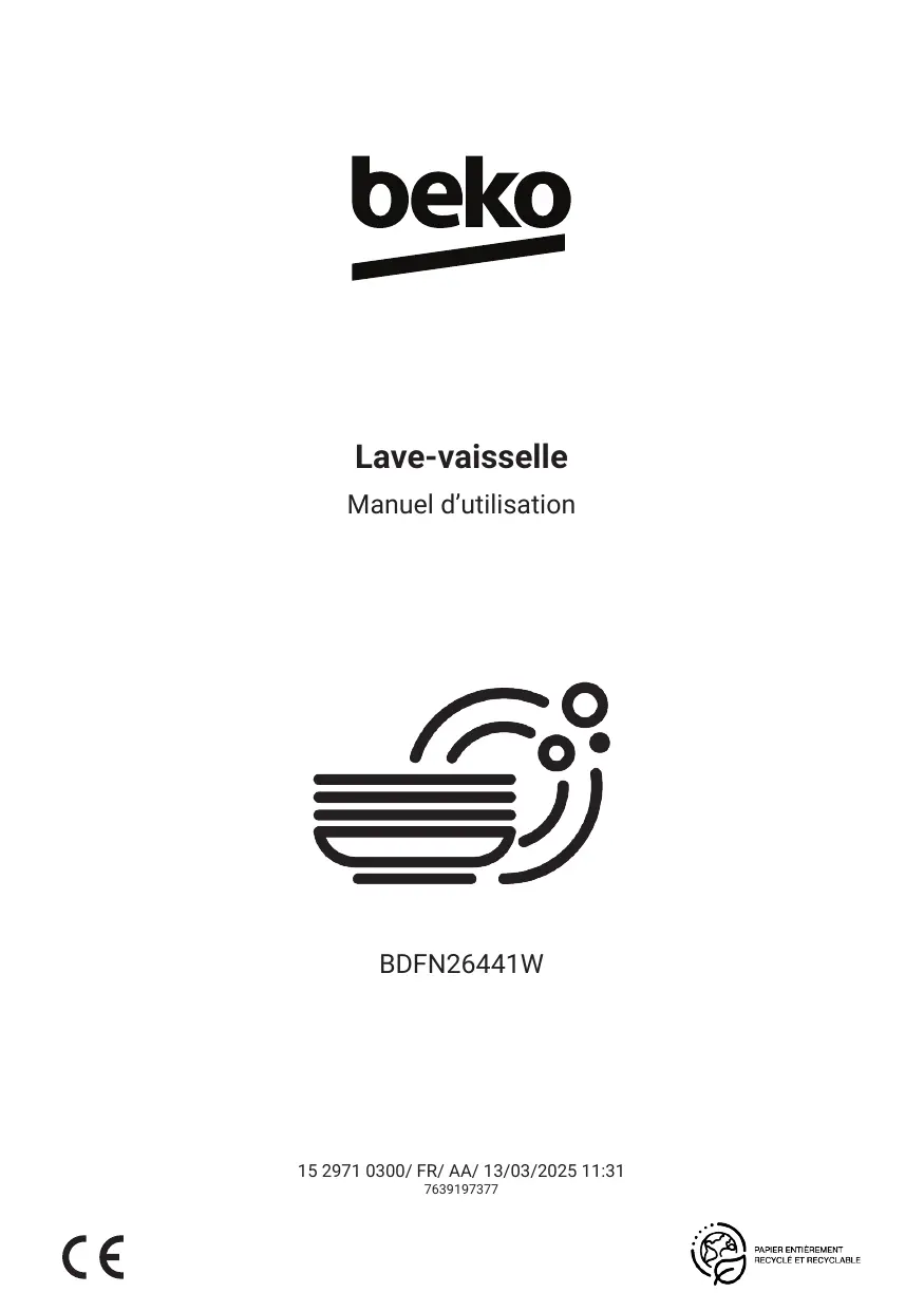BDFN26441W - Lave-vaisselle BEKO - Notice d'utilisation et mode d'emploi gratuit