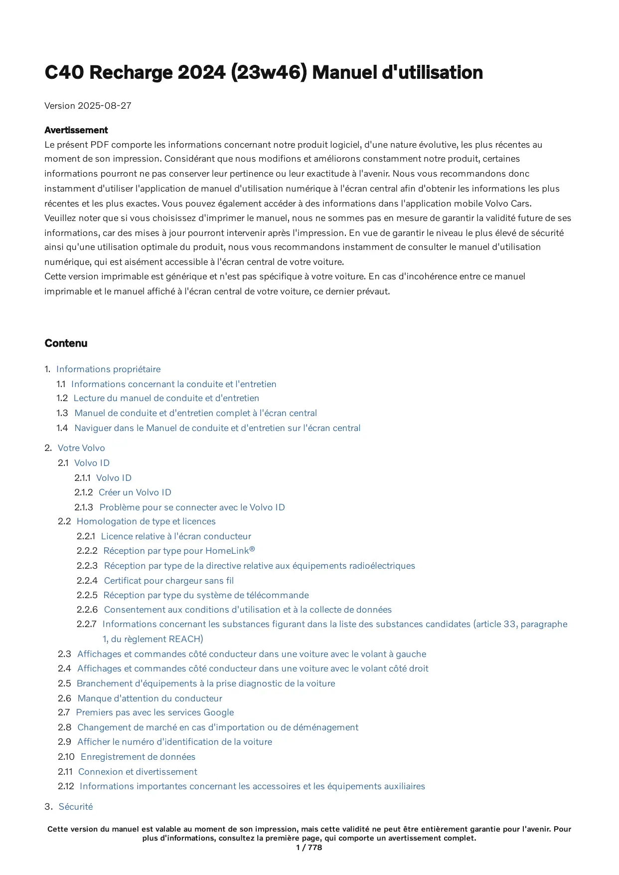 Retrouvez gratuitement la notice de l'appareil C40 (2024) VOLVO au format PDF.