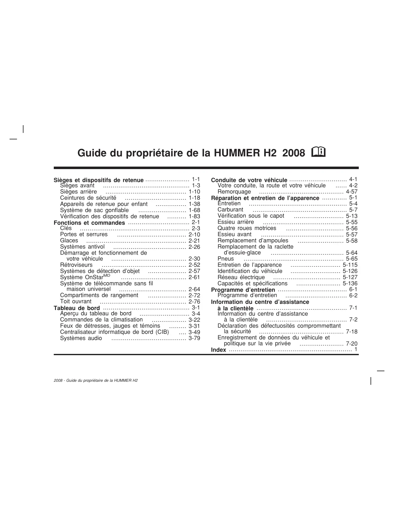 Retrouvez gratuitement la notice de l'appareil H2 (2008) Hummer au format PDF.