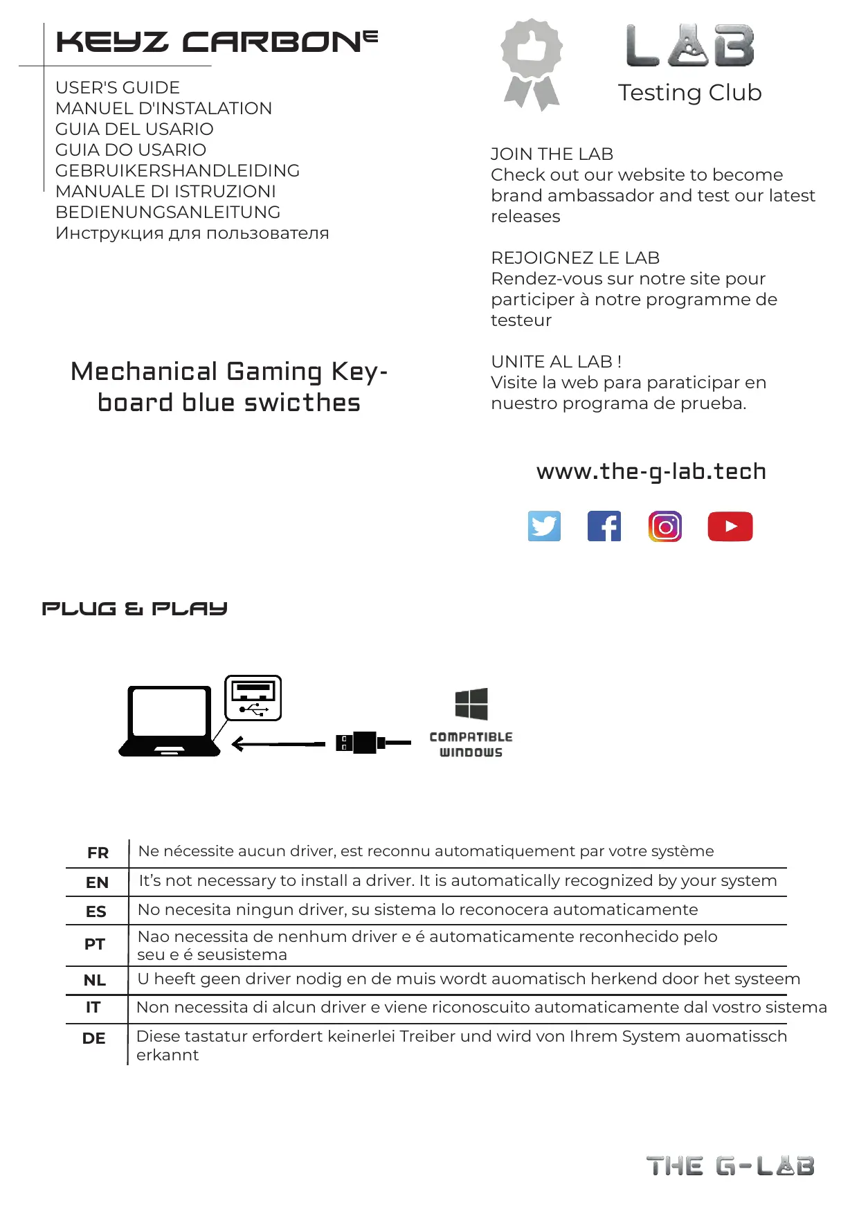KEYZCARBONE - Clavier mécanique THE G-LAB - Notice d'utilisation et mode d'emploi gratuit