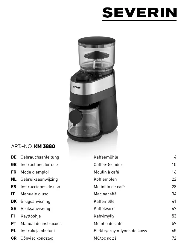 KM3880 - Moulin à café SEVERIN - Notice d'utilisation et mode d'emploi gratuit