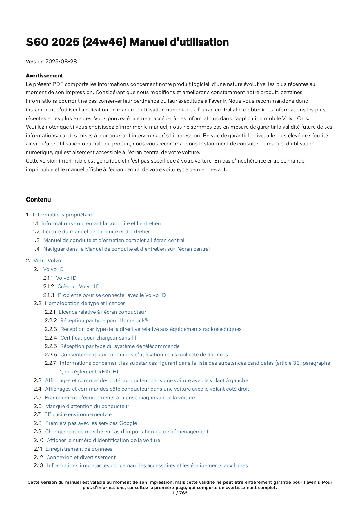 Retrouvez gratuitement la notice de l'appareil S60 (2025) VOLVO au format PDF.