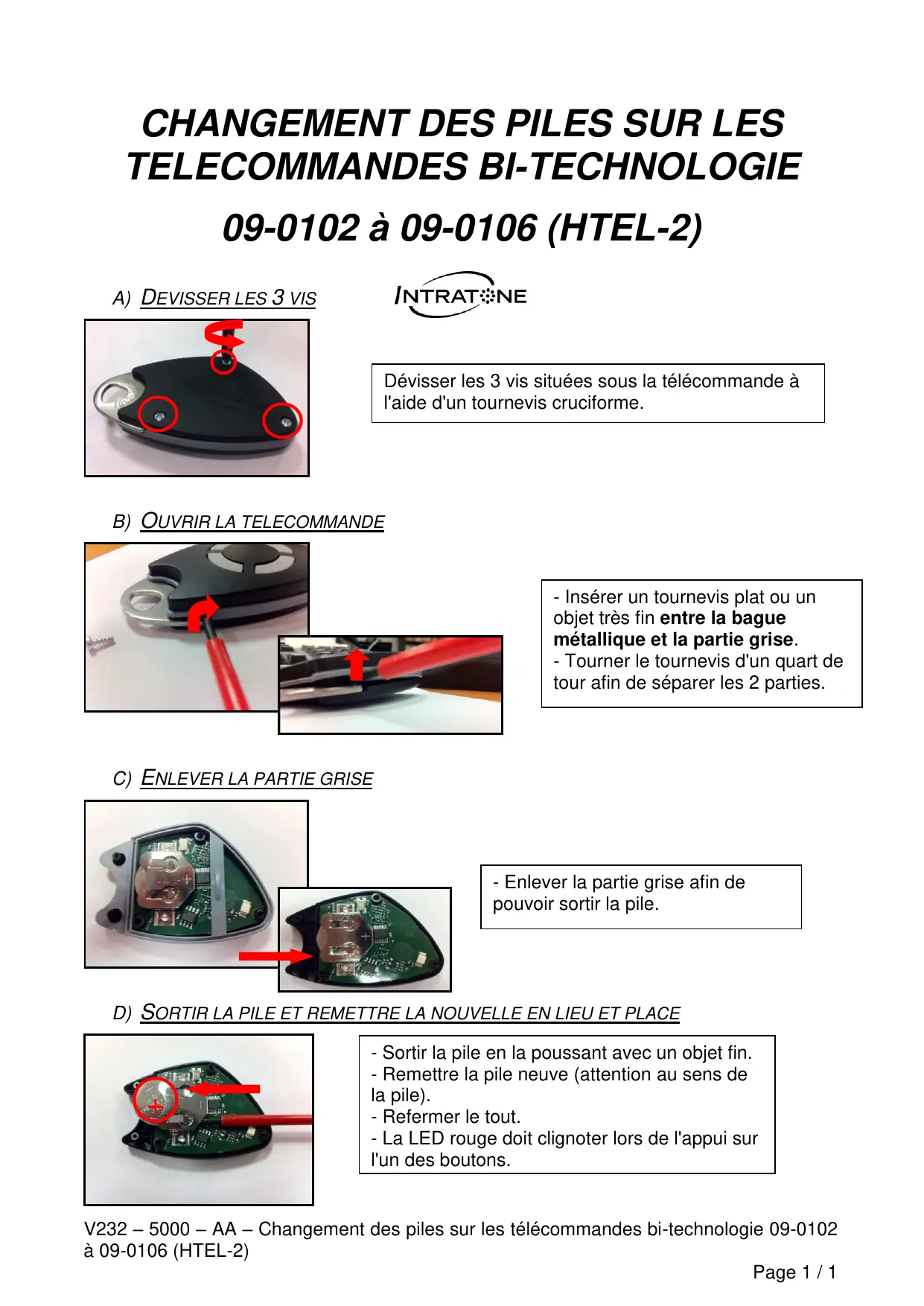 090115 - Télécommande INTRATONE - Notice d'utilisation et mode d'emploi gratuit