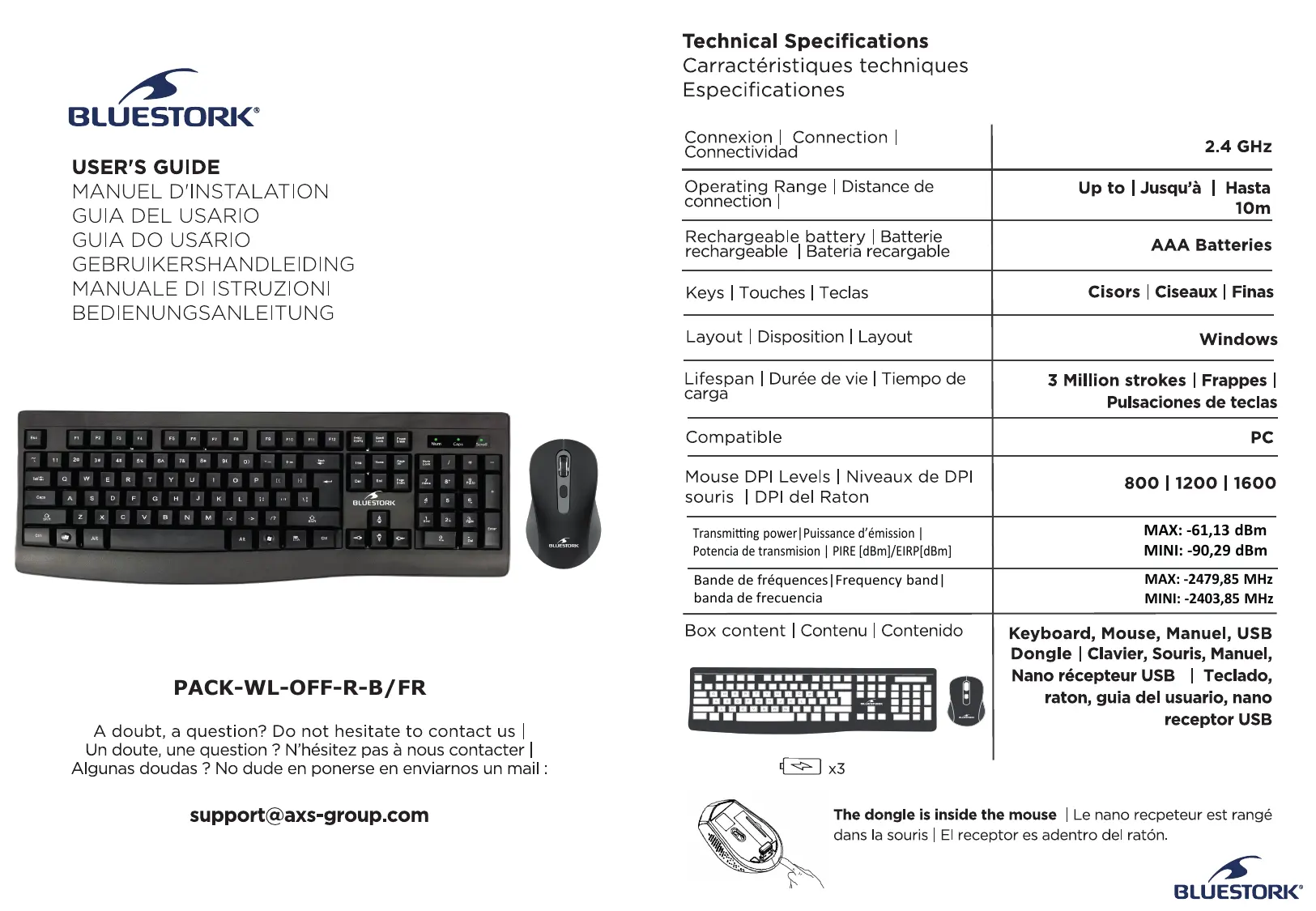 PACKWLOFFRB - Ensemble clavier / souris BLUESTORK - Notice d'utilisation et mode d'emploi gratuit