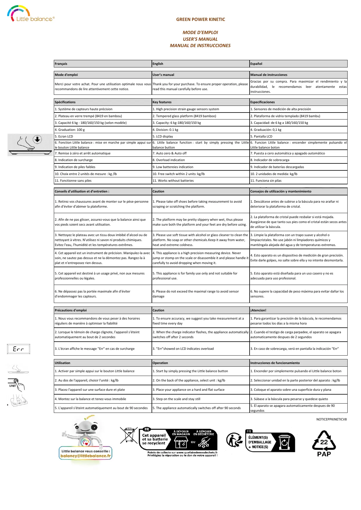 Retrouvez gratuitement la notice de l'appareil 8185 LITTLE BALANCE au format PDF.