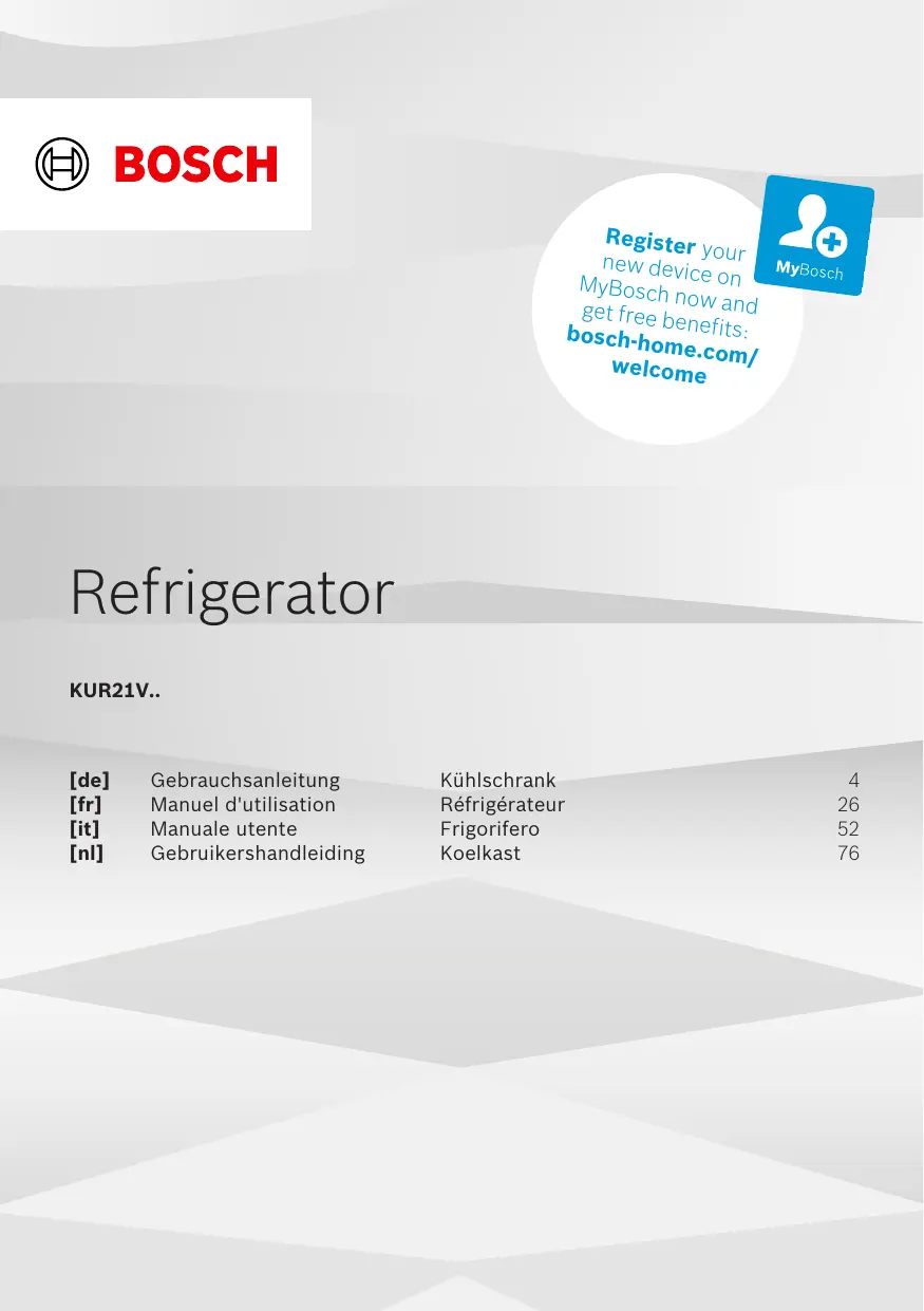KUR21VFE0 - Réfrigérateur BOSCH - Notice d'utilisation et mode d'emploi gratuit