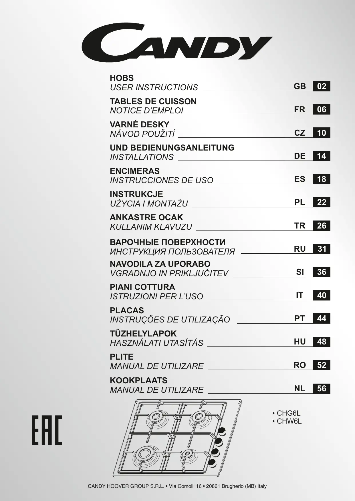 CHW640WLW - TABLE GAZ CANDY - Notice d'utilisation et mode d'emploi gratuit