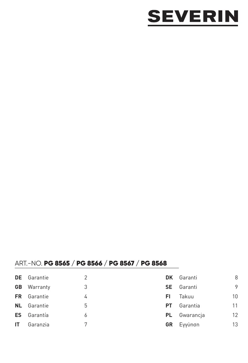 Retrouvez gratuitement la notice de l'appareil PG8568 SEVERIN au format PDF.
