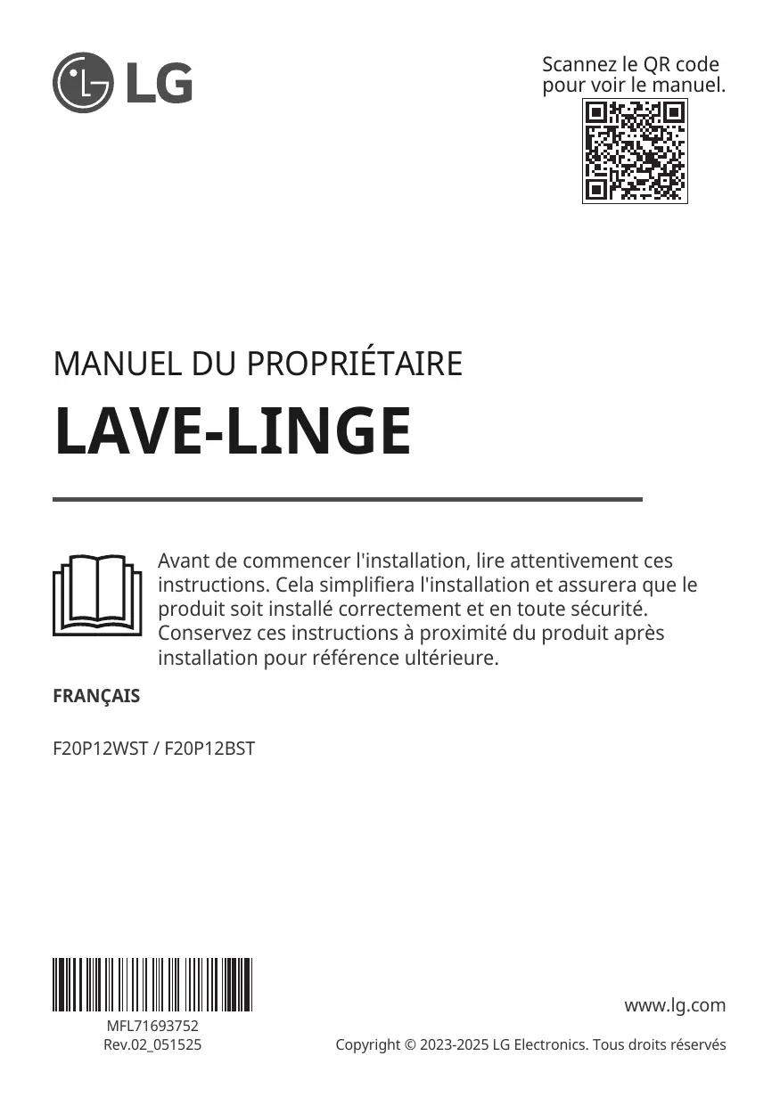 F20P12BST - Lave-linge LG - Notice d'utilisation et mode d'emploi gratuit