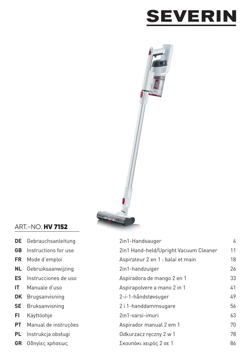 HV7152 - Aspirateur balai SEVERIN - Notice d'utilisation et mode d'emploi gratuit