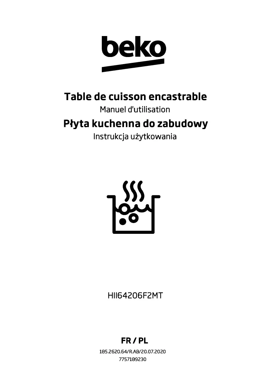 HII64206F2MT - Plaque à induction BEKO - Notice d'utilisation et mode d'emploi gratuit