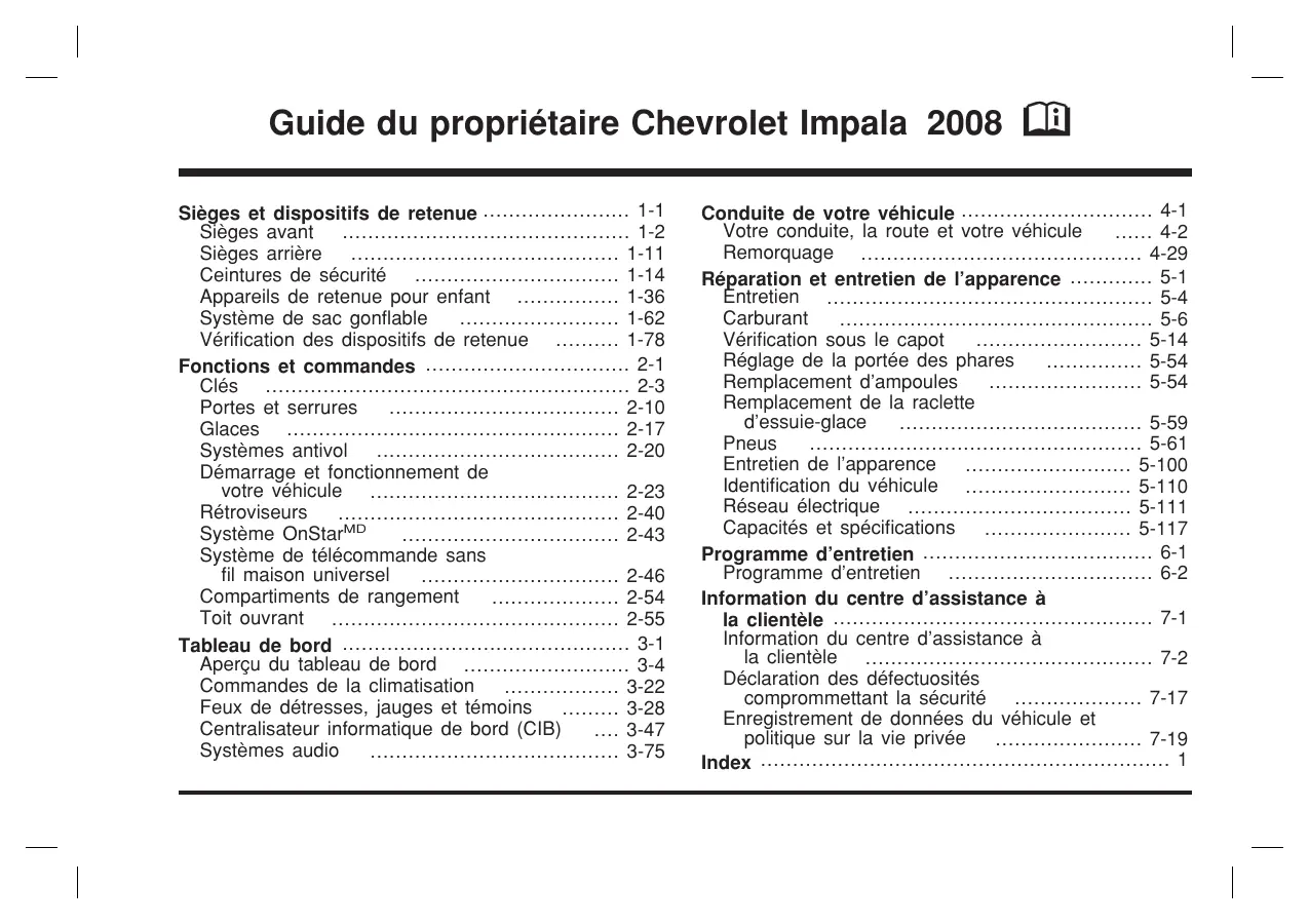Impala (2008) - Automobile CHEVROLET - Notice d'utilisation et mode d'emploi gratuit