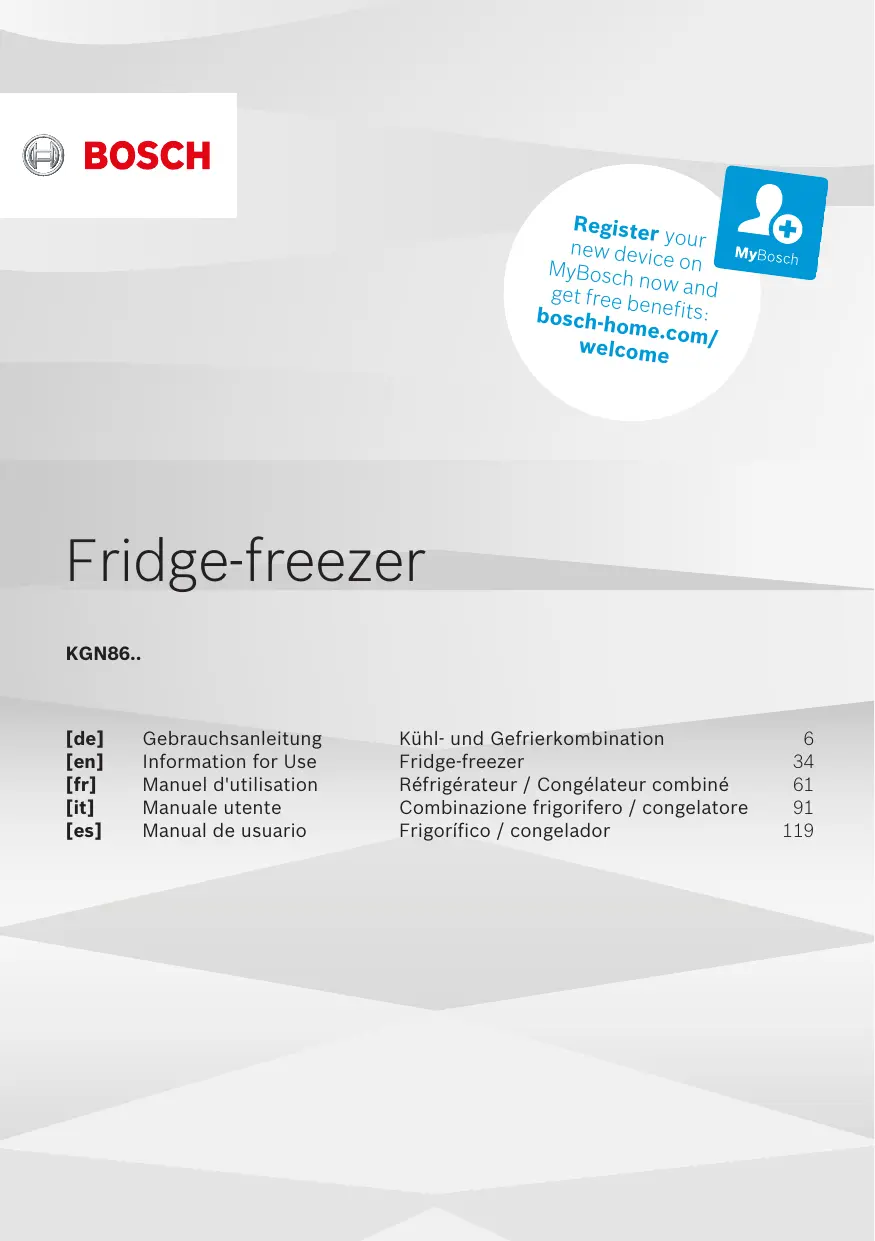Retrouvez gratuitement la notice de l'appareil KGN86AIDR BOSCH au format PDF.