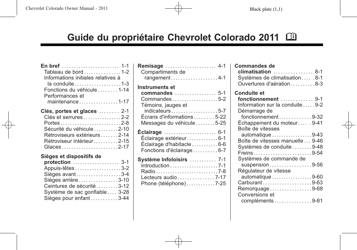 Colorado (2011) - Automobile CHEVROLET - Notice d'utilisation et mode d'emploi gratuit