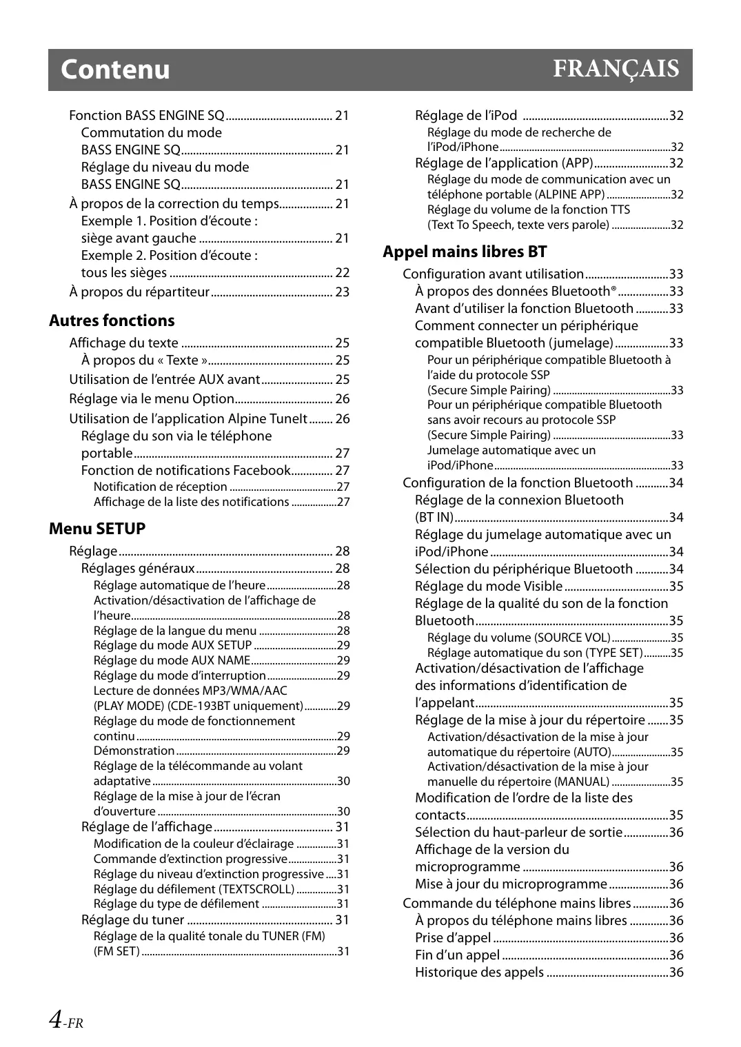 - 3-FR Contenu Fonction BASS ENGINE SQ Commutation du mode p. 21