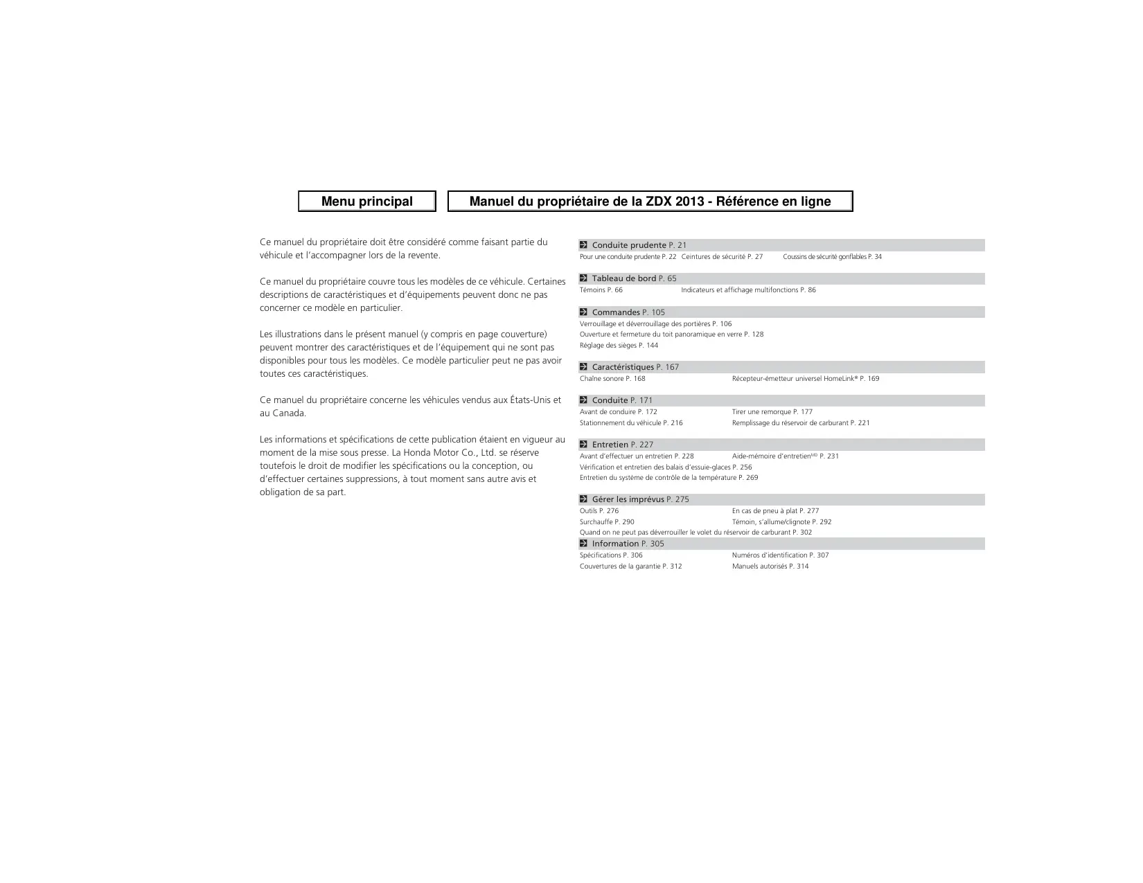 ZDX (2013) - Automobile Acura - Notice d'utilisation et mode d'emploi gratuit