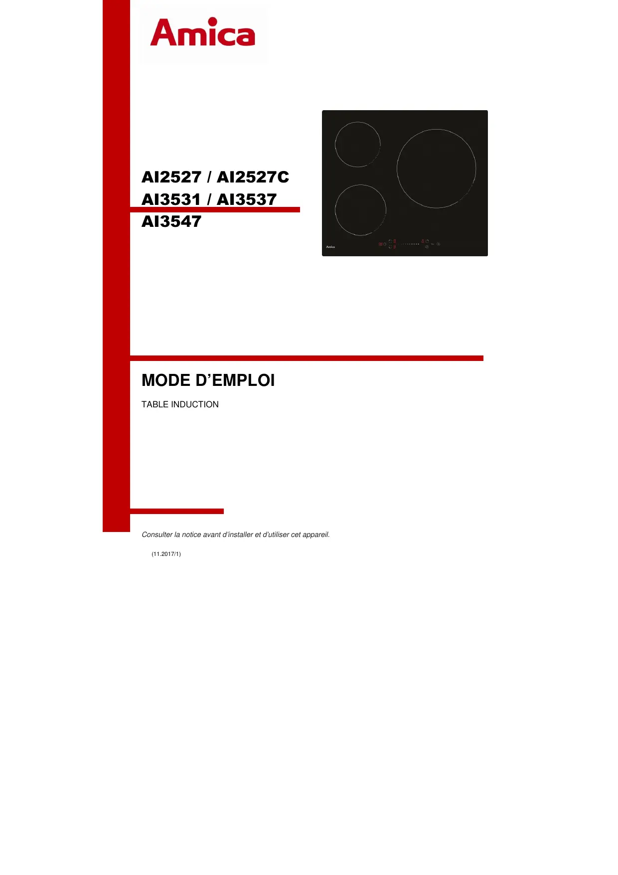 AI3537 - Plaque à induction AMICA - Notice d'utilisation et mode d'emploi gratuit