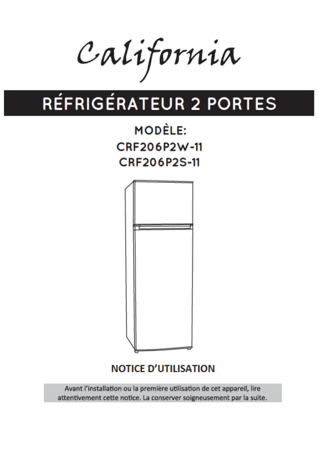 CRF206P2S11 - Réfrigérateur CALIFORNIA - Notice d'utilisation et mode d'emploi gratuit