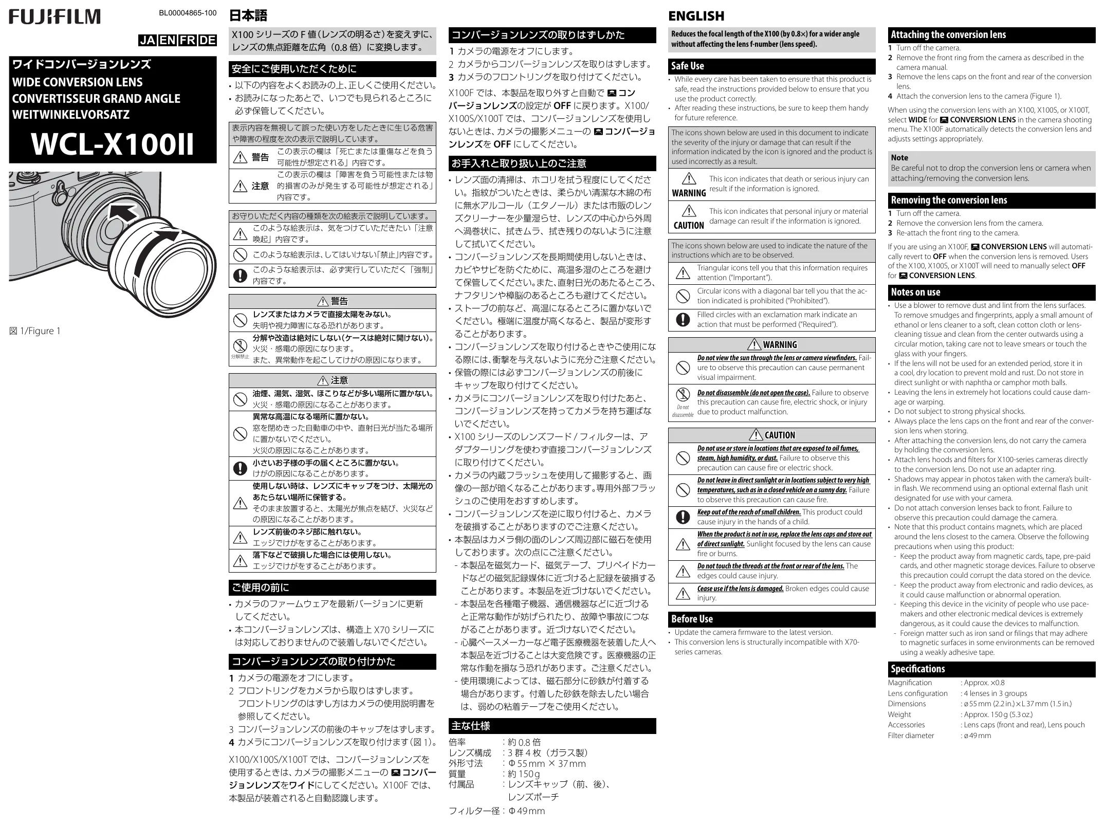 Téléchargez la notice de votre Accessoire photo au format PDF gratuitement ! Retrouvez votre notice WCLX100II - FUJIFILM et reprennez votre appareil électronique en main. Sur cette page sont publiés tous les documents nécessaires à l'utilisation de votre appareil WCLX100II de la marque FUJIFILM.