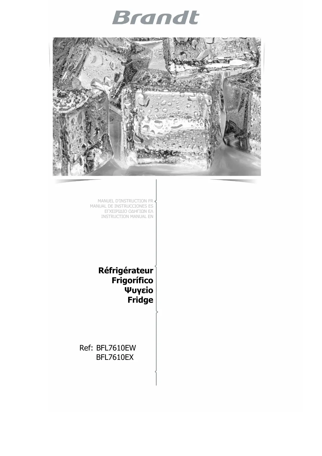 BFL7610EX - Réfrigérateur BRANDT - Notice d'utilisation et mode d'emploi gratuit