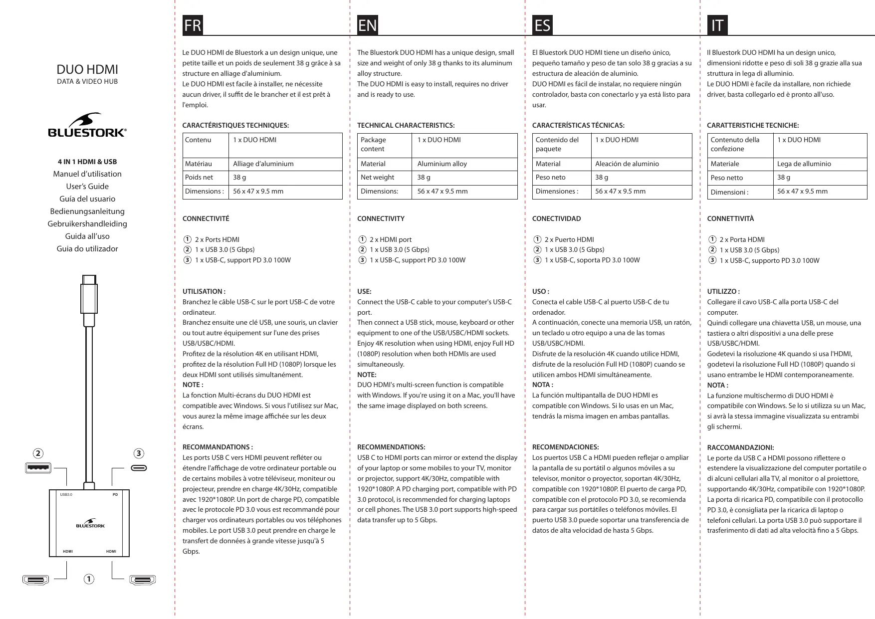 Retrouvez gratuitement la notice de l'appareil HUBDUOHDMI BLUESTORK au format PDF.