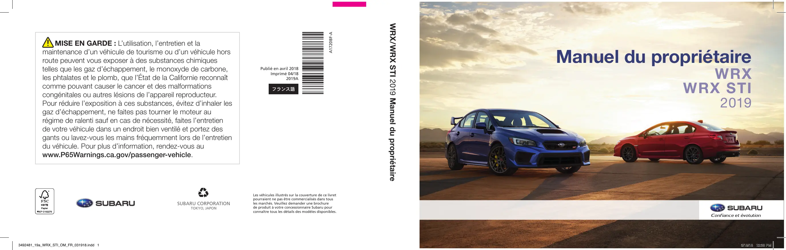 WRX STI (2019) - Automobile SUBARU - Notice d'utilisation et mode d'emploi gratuit