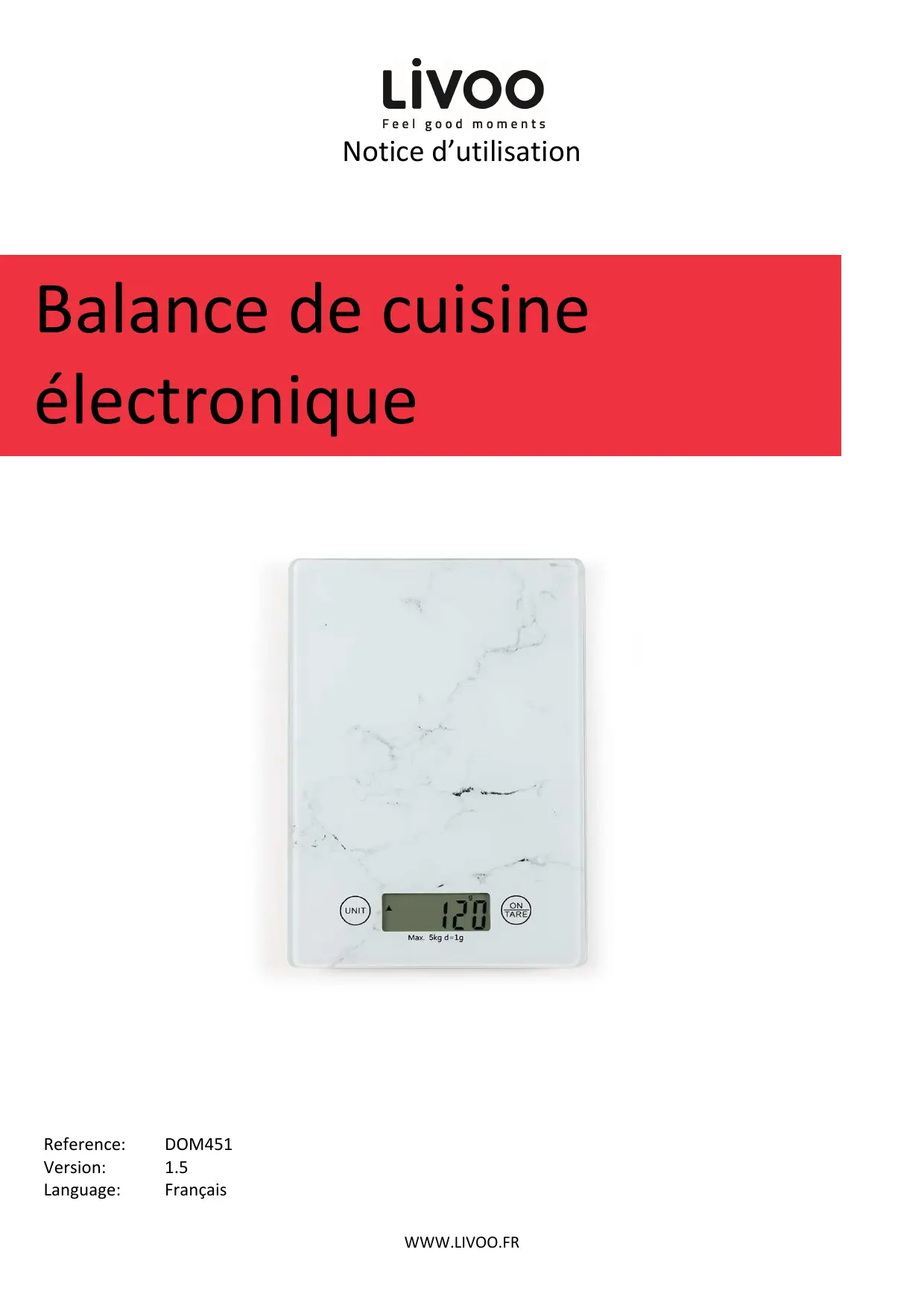 DOM451A - Balance de cuisine LIVOO - Notice d'utilisation et mode d'emploi gratuit