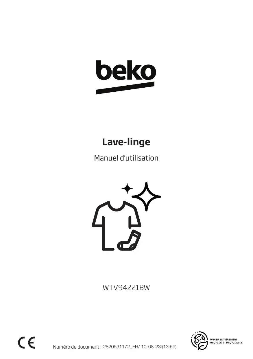 WTV94221BW - Lave-linge BEKO - Notice d'utilisation et mode d'emploi gratuit