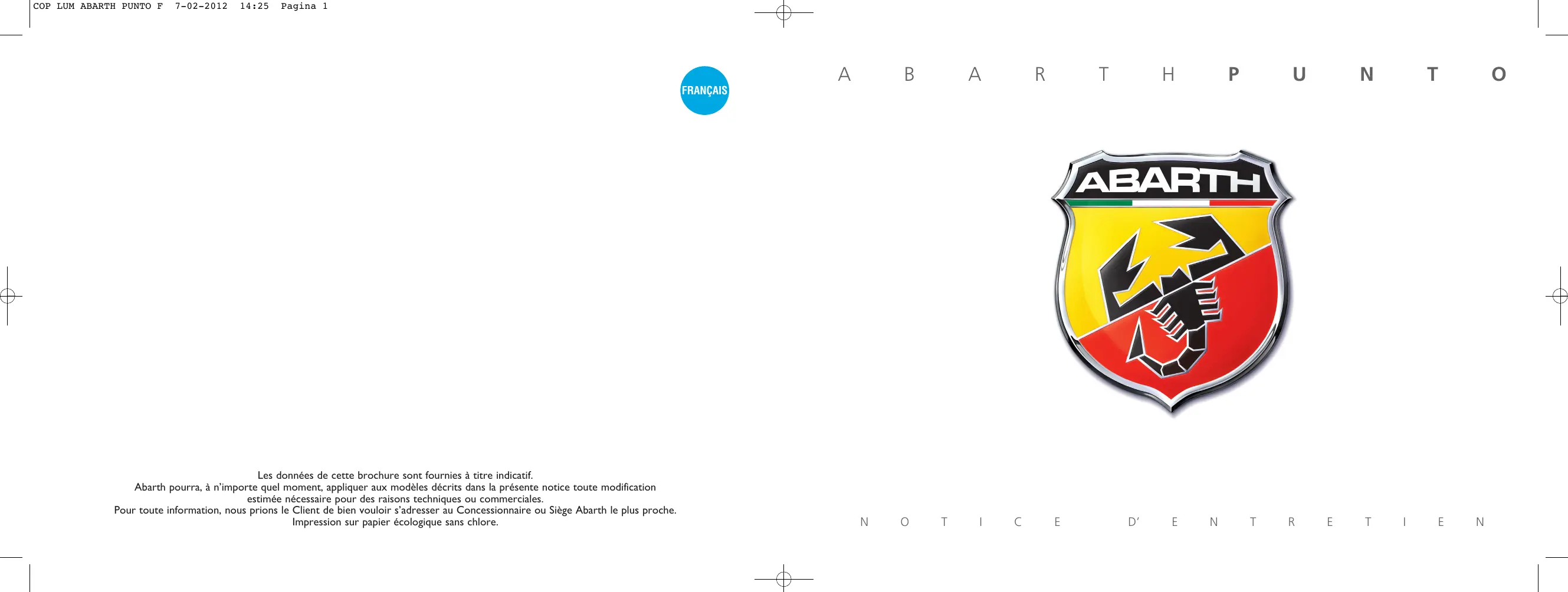 Nous vous remercions d'avoir préféré Abarth et nous vous félicitons d'avoir choisi une Abarth Punto.
