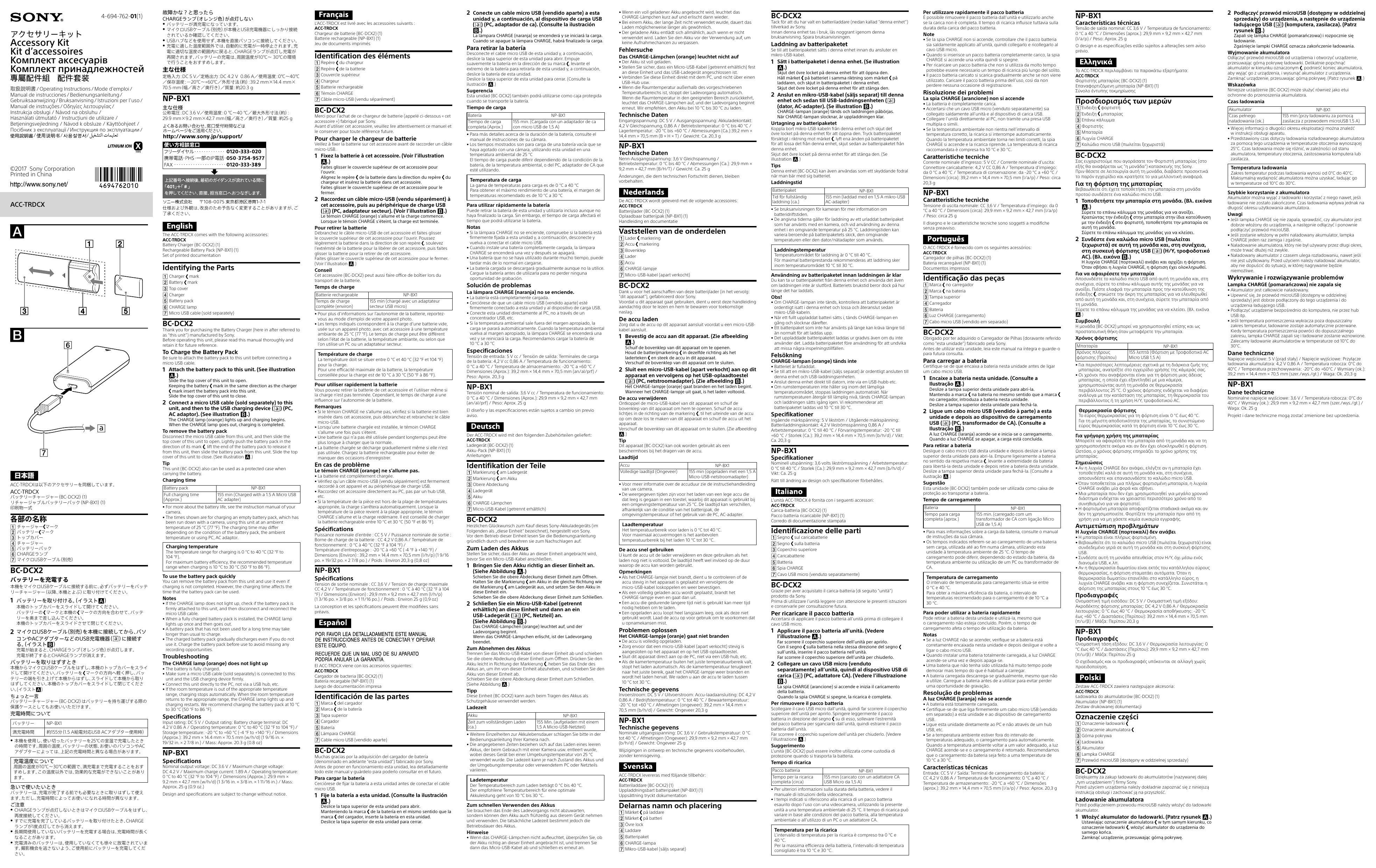Retrouvez gratuitement la notice de l'appareil ACCTRDCX SONY au format PDF.