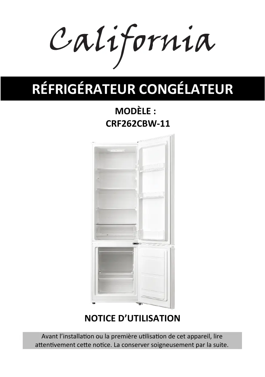 CRF262CBW11 - Réfrigérateur combiné inversé CALIFORNIA - Notice d'utilisation et mode d'emploi gratuit