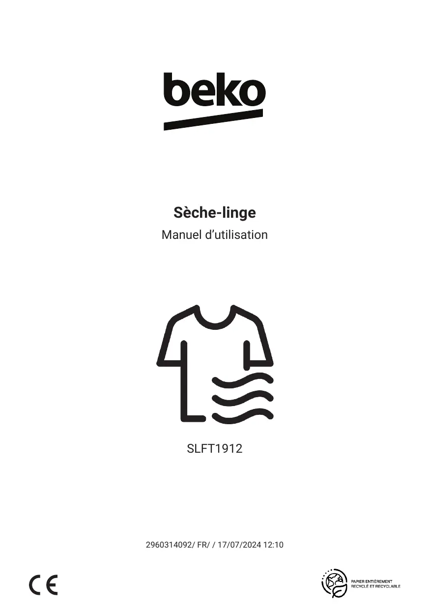 SLFT1912 - Sèche-linge BEKO - Notice d'utilisation et mode d'emploi gratuit