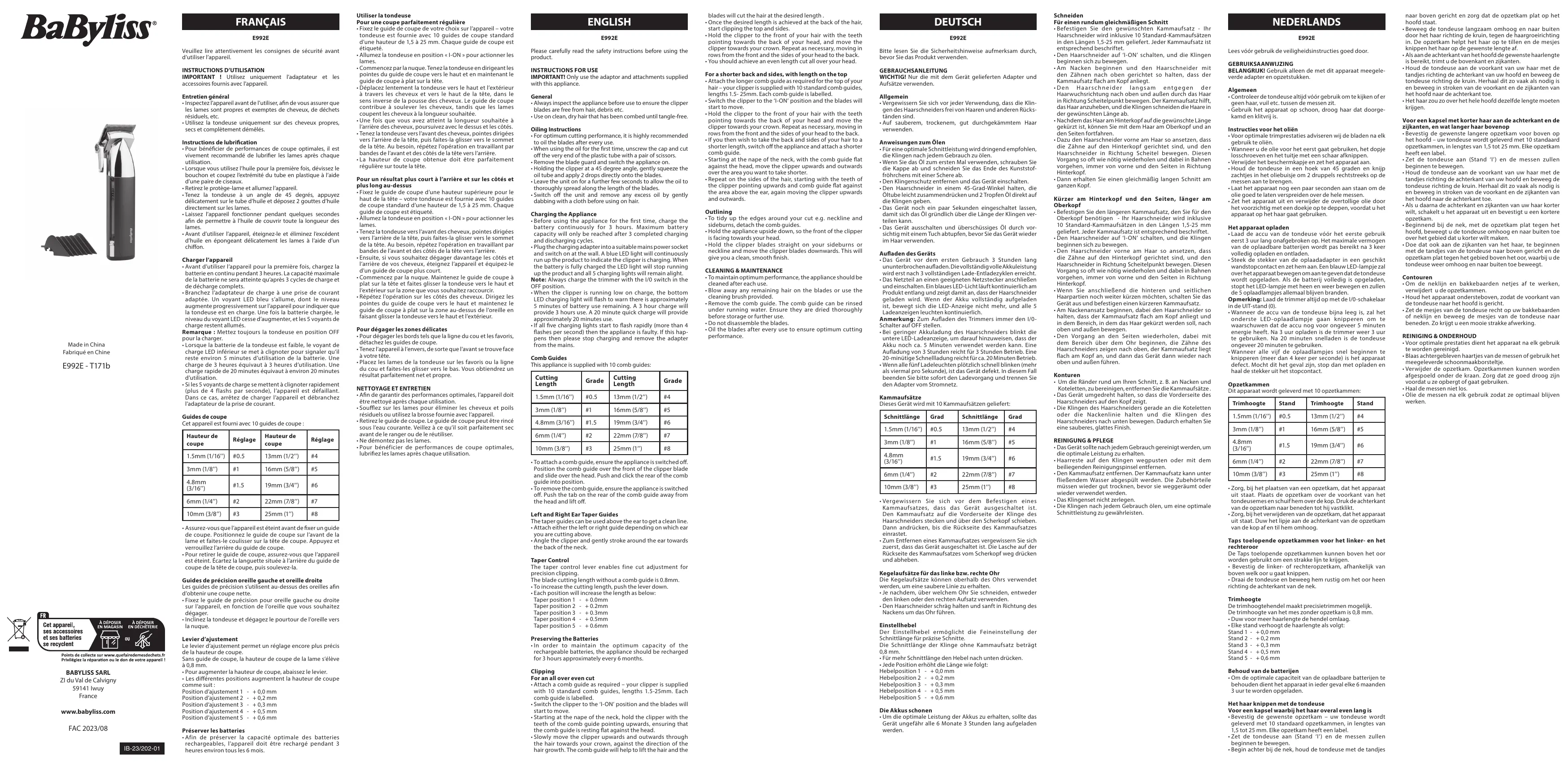 E992E - Tondeuse cheveux BABYLISS - Notice d'utilisation et mode d'emploi gratuit