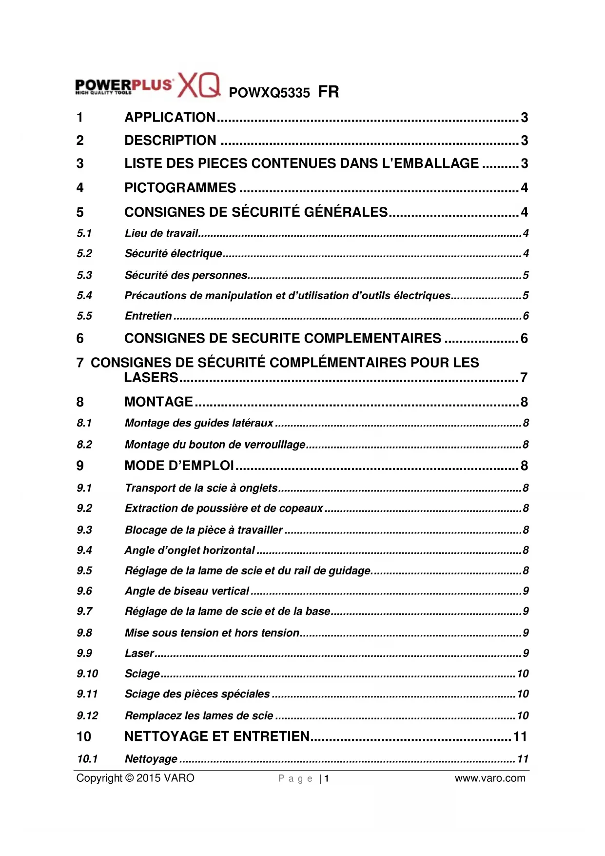 Téléchargez la notice de votre Scie au format PDF gratuitement ! Retrouvez votre notice POWXQ5335 - PowerPlus et reprennez votre appareil électronique en main. Sur cette page sont publiés tous les documents nécessaires à l'utilisation de votre appareil POWXQ5335 de la marque PowerPlus.