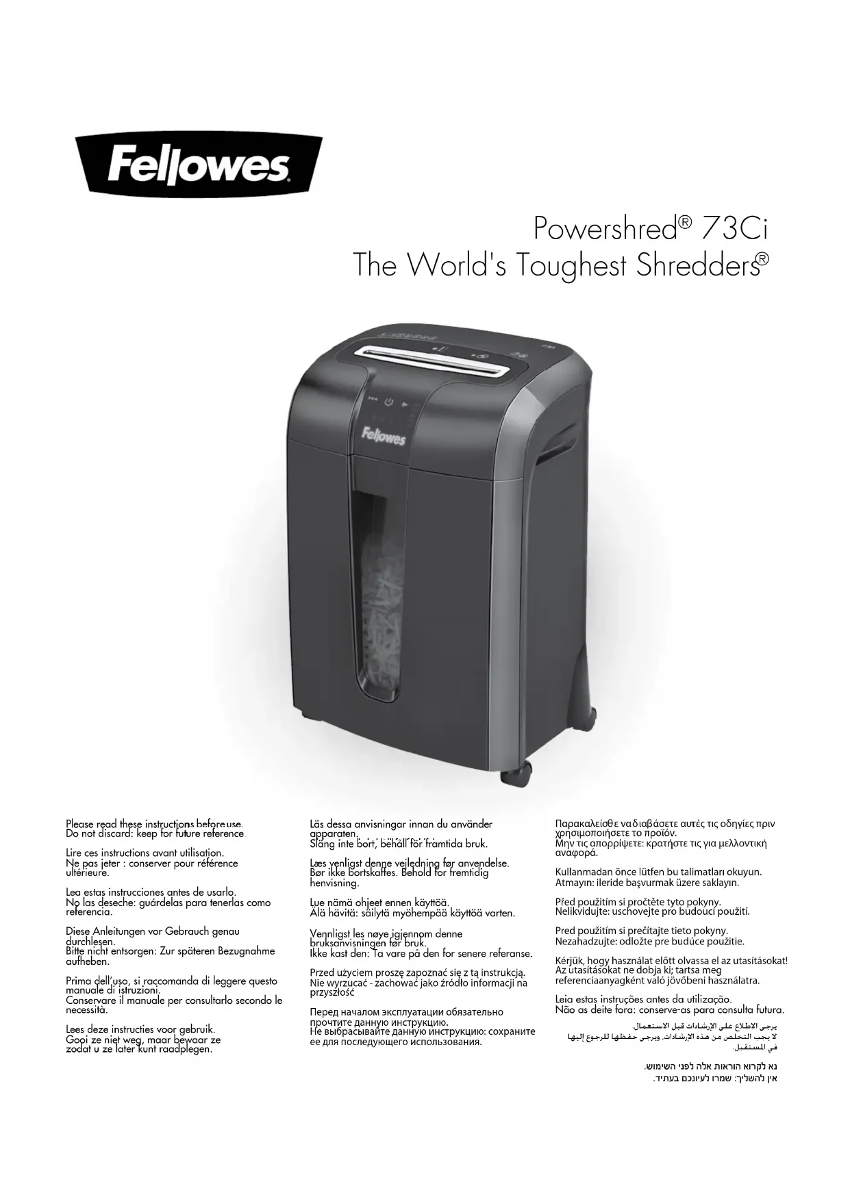 Retrouvez gratuitement la notice de l'appareil Powershred 73Ci FELLOWES au format PDF.