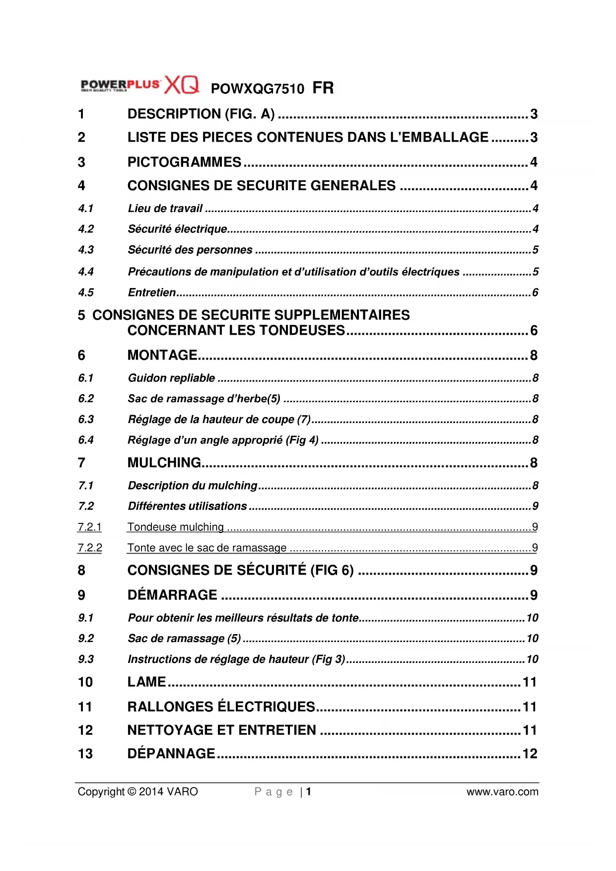 que le moteur est arrêté.POWXQG7510 FR Copyright © 2014 VARO P a g e | 10 www.varo.com