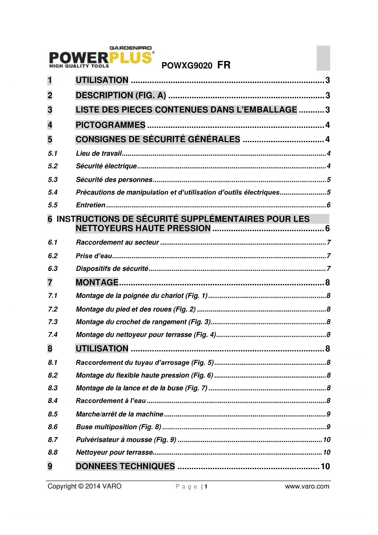 POWXG9020 - Nettoyeur haute pression PowerPlus - Notice d'utilisation et mode d'emploi gratuit