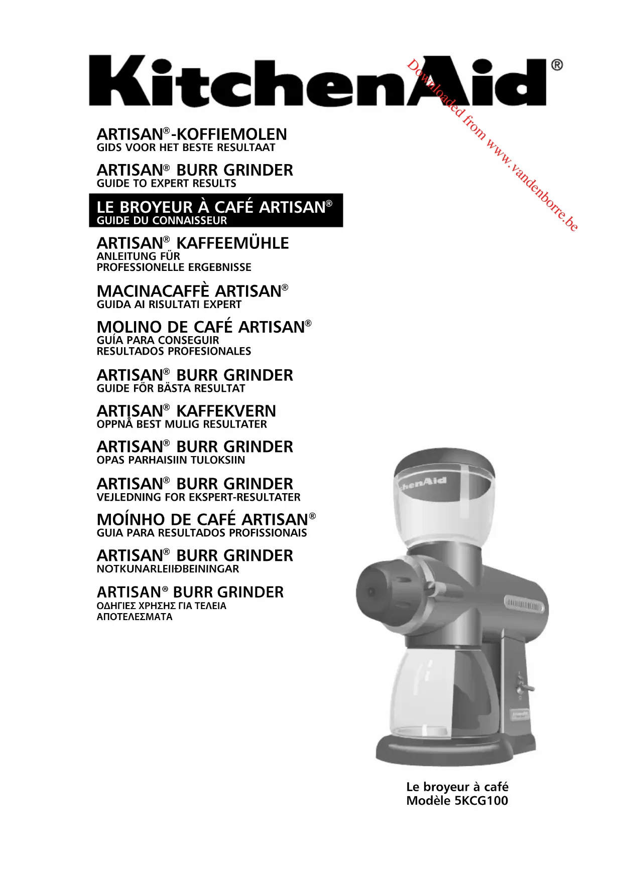 Artisan 5KCG100 - Moulin à café KITCHENAID - Notice d'utilisation et mode d'emploi gratuit