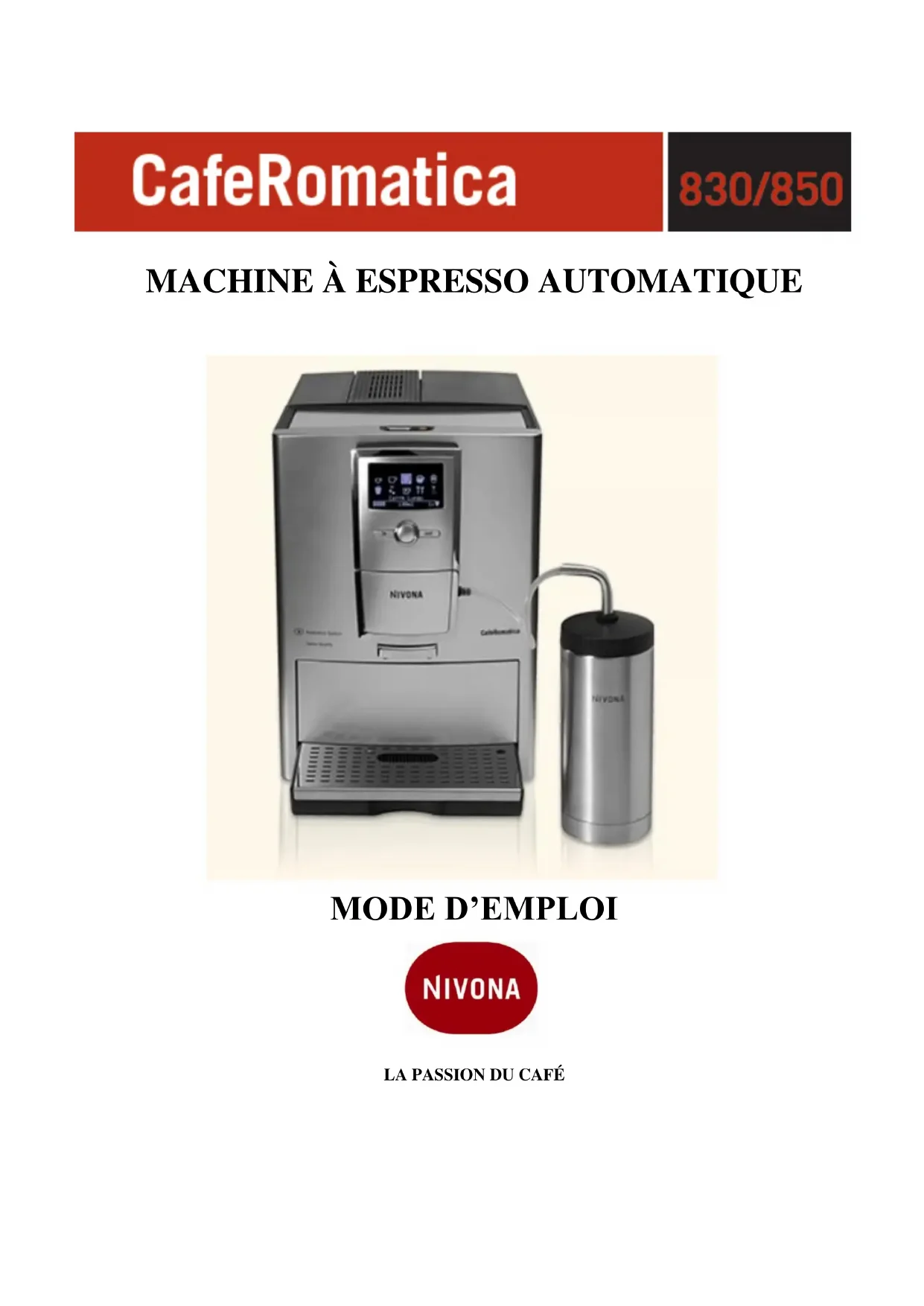 MODE D'EMPLOI CafeRomatica 855 Nivona