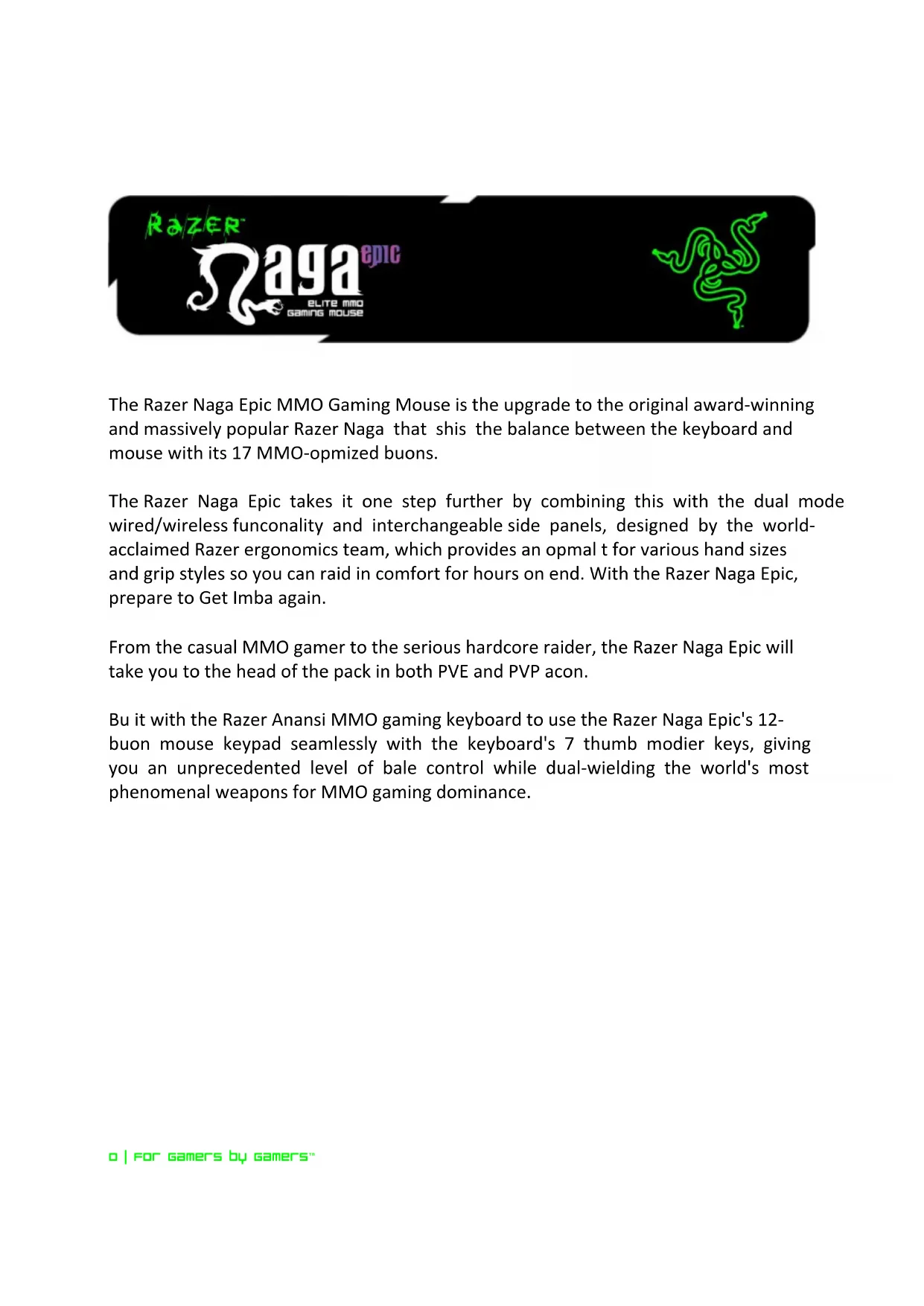 Naga Epic Elite MMO - Souris RAZER - Notice d'utilisation et mode d'emploi gratuit
