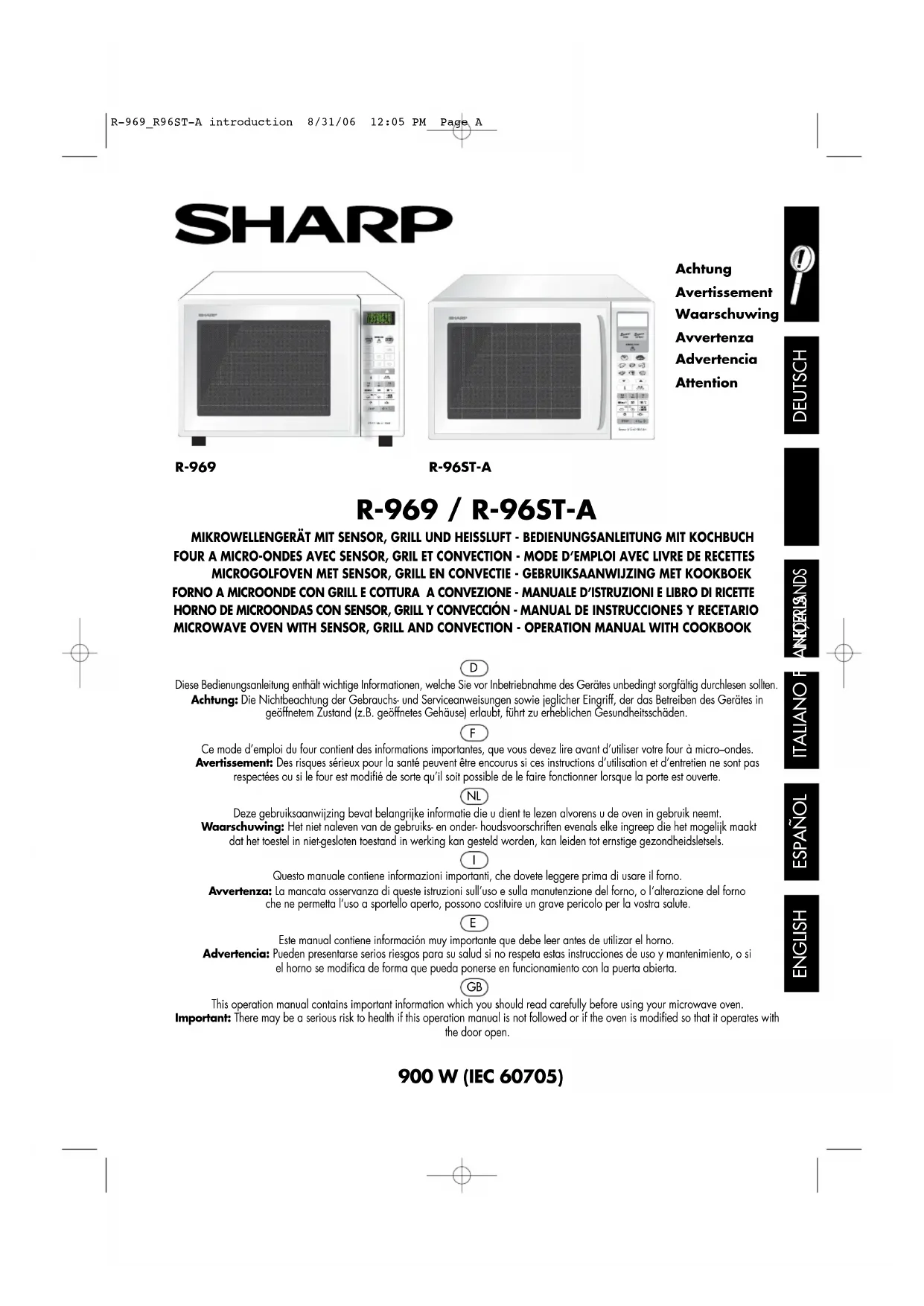 R969INA - Four à micro-ondes SHARP - Notice d'utilisation et mode d'emploi gratuit