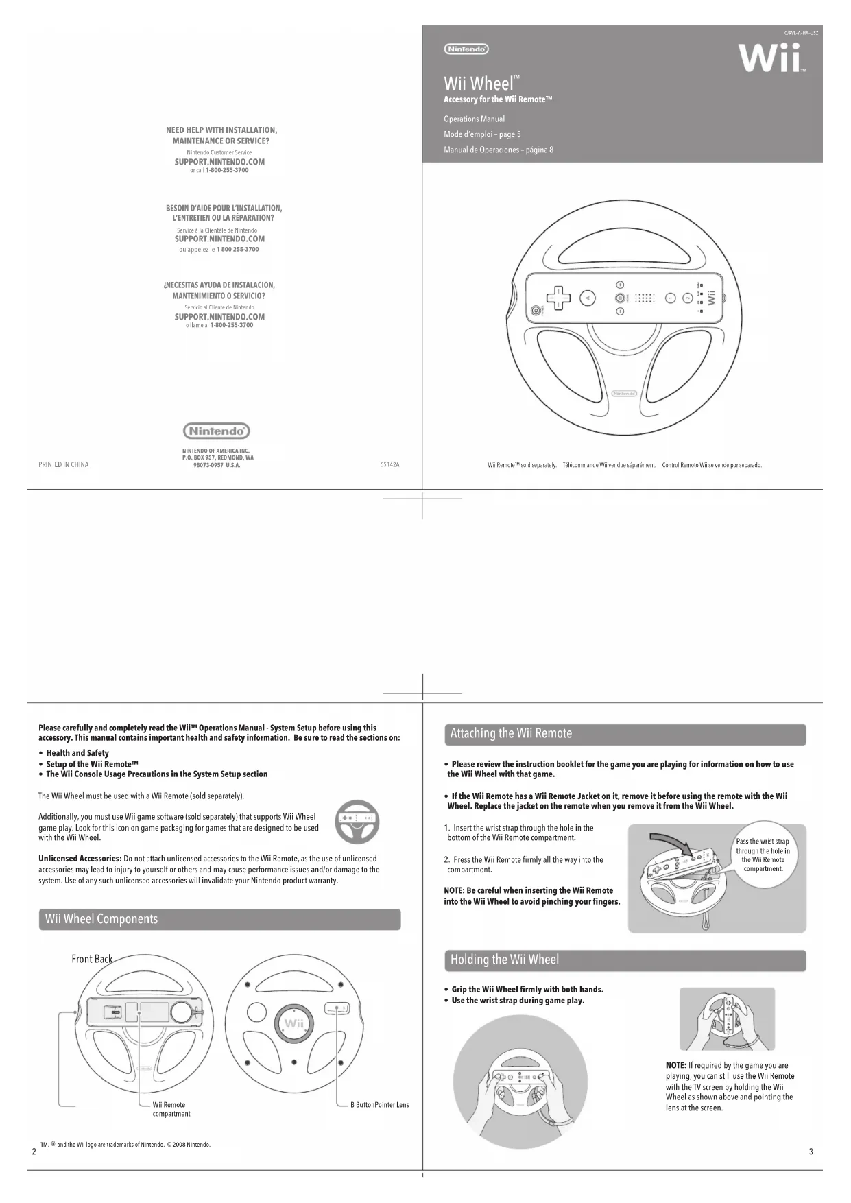 Retrouvez gratuitement la notice de l'appareil Wii Wheel NINTENDO au format PDF.