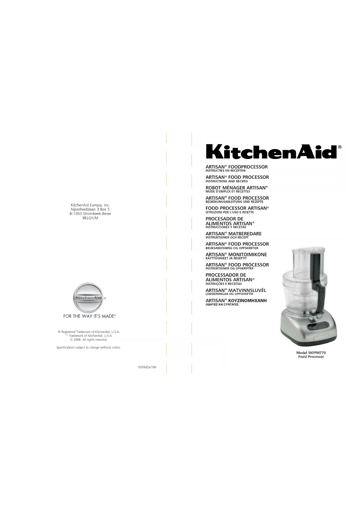 Retrouvez gratuitement la notice de l'appareil 5KFPM770 KITCHENAID au format PDF.